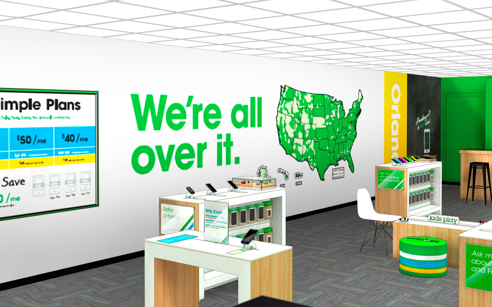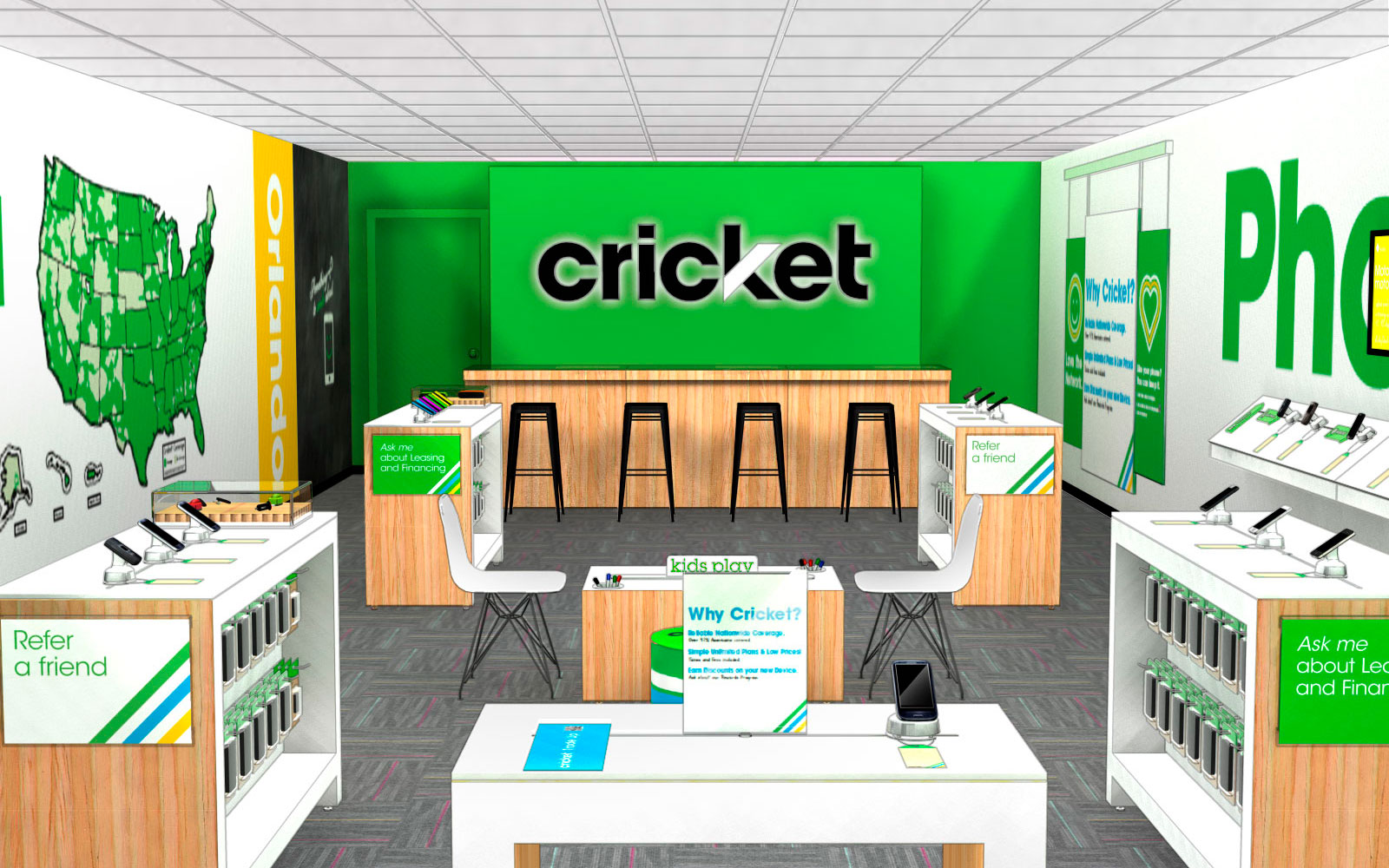 The redesigned Cricket Wireless store is a place where the whole family is welcome. We have children play areas around the store, so customers can enjoy their shopping experience knowing that their children are having a great time!