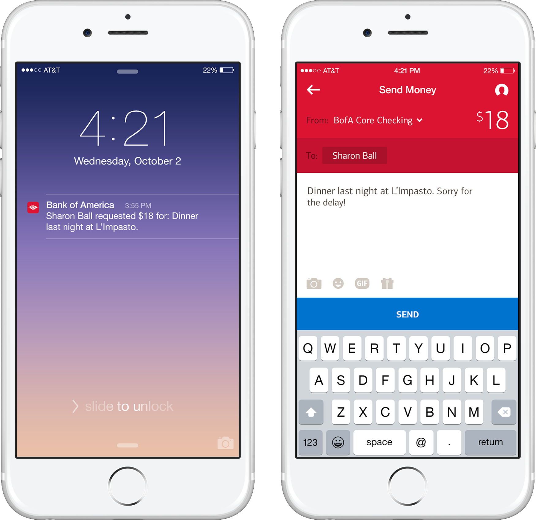 Make receiving money a delight and more importantly get your money in as few steps as possible—four steps to be exact. Through user interviews we found that many consumers were cautious about receiving money from unbranded experiences. Therefore, the Bank of America design will increase a sense of security.